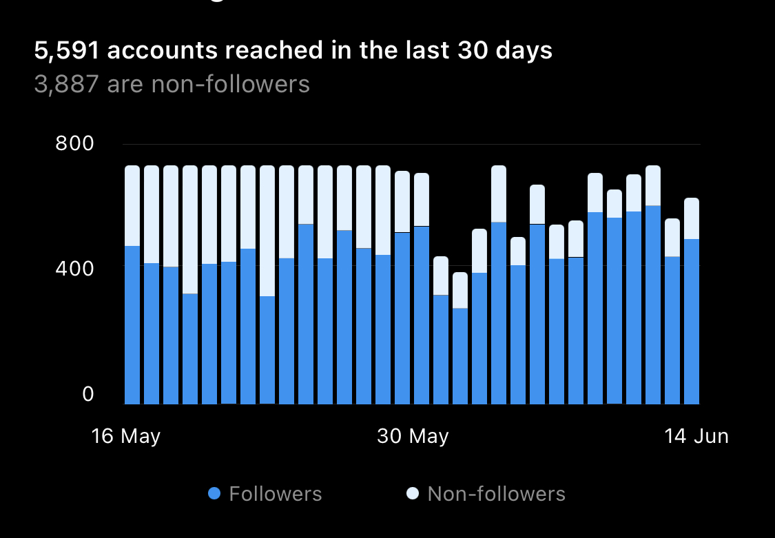 My Instagram reach is absolutely terrible. Here’s my insights graph: